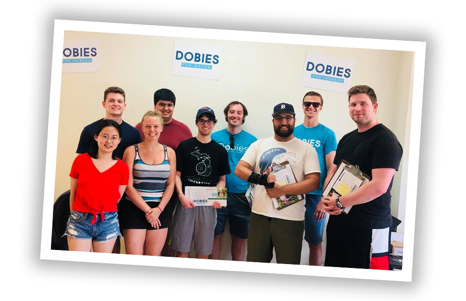 Derek Dobies is a bold leader focused on building opportunity for working people across Jackson. As a former mayor and current school board member, he brings his hard work ethic and decades of policy experience towards rebuilding our local schools, community, and economy.
